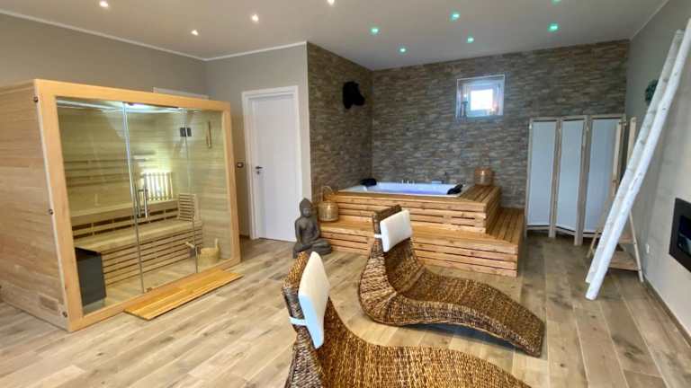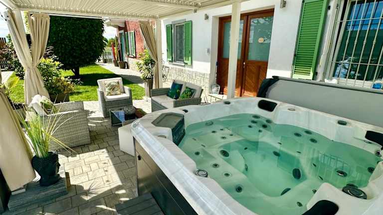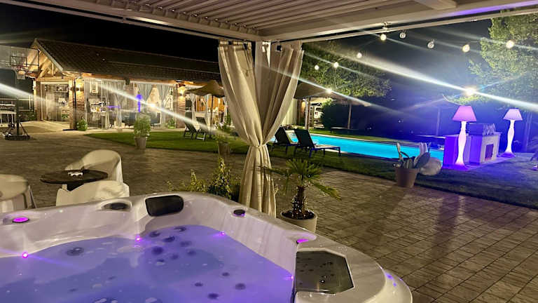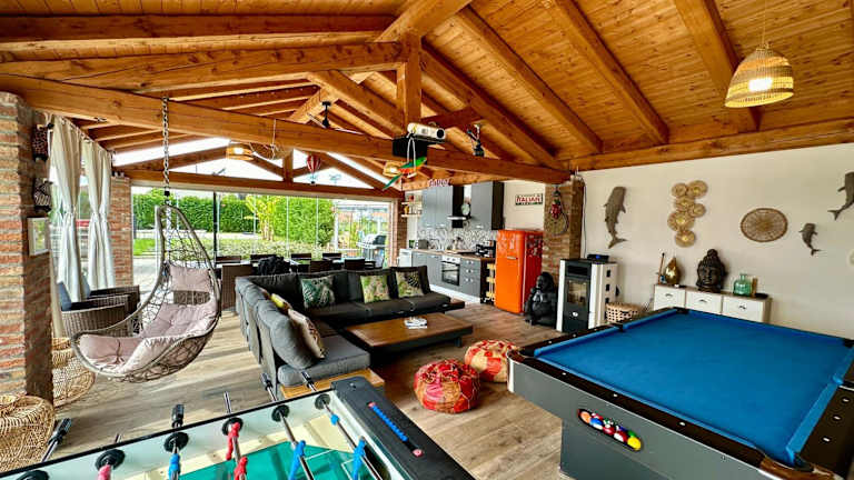 Die Unterkunft bietet ein umfangreiches Freizeitangebot, darunter Billard, Tischtennis und die Nutzung eines Fitnessraums. Ein Wellness-Bereich mit Sauna und Whirlpool steht ebenfalls zur Verfügung. Außerdem gibt es einen Garten mit einem Kinderspielplatz und Grillmöglichkeiten.
