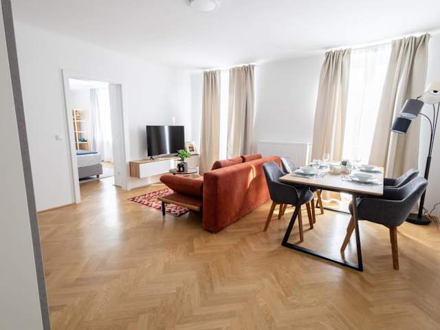 Die Unterkunft verfügt über zwei Schlafzimmer, ein Wohnzimmer und eine voll ausgestattete Küche mit Kühlschrank und Kaffeemaschine. Das Badezimmer ist mit einer Dusche und kostenlosen Pflegeprodukten ausgestattet. Handtücher und Bettwäsche werden bereitgestellt. Die Zimmer sind schallisoliert und allergikerfreundlich.