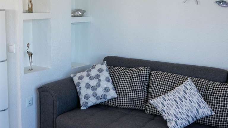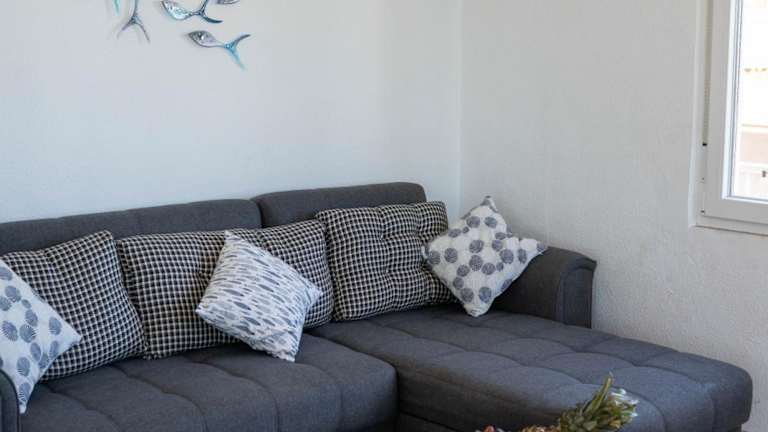 Das Apartment bietet 2 Schlafzimmer, 1 Badezimmer, einen Balkon mit Meerblick, eine Terrasse, einen Flachbild-TV, einen Essbereich und eine voll ausgestattete Küche. Bettwäsche und Handtücher werden gestellt, und das Apartment verfügt auch über eine Klimaanlage für zusätzlichen Komfort. Kostenloses WLAN ist ebenfalls verfügbar.