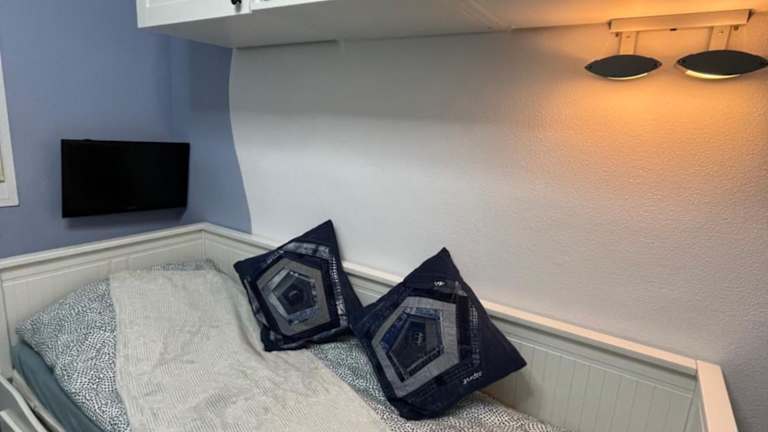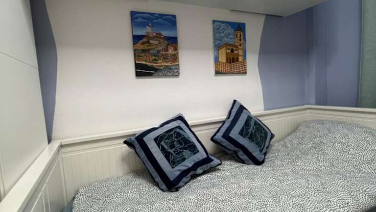 Die Ferienwohnung ist klimatisiert und besteht aus zwei Schlafzimmern, einem Wohnzimmer sowie einer voll ausgestatteten Küche, die über einen Kühlschrank und eine Kaffeemaschine verfügt. Es gibt zudem zwei Badezimmer, die mit einem Bidet und einer Dusche ausgestattet sind. Handtücher und Bettwäsche werden bereitgestellt.