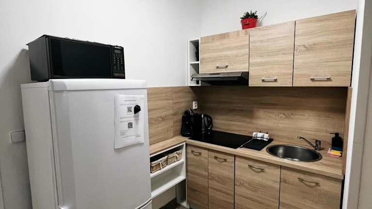 Das Apartment bietet ein Restaurant, in dem die Gäste köstliche Mahlzeiten genießen können. Alternativ können die Gäste die gut ausgestattete Küche nutzen, um ihre eigenen Mahlzeiten zuzubereiten.