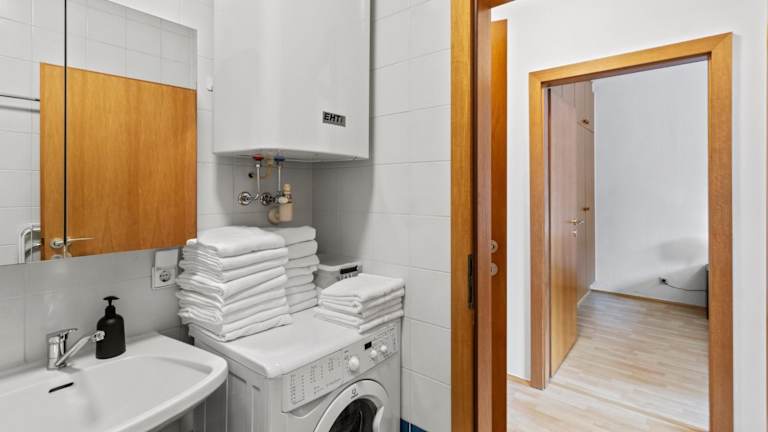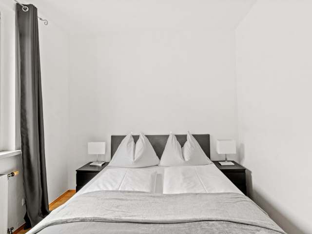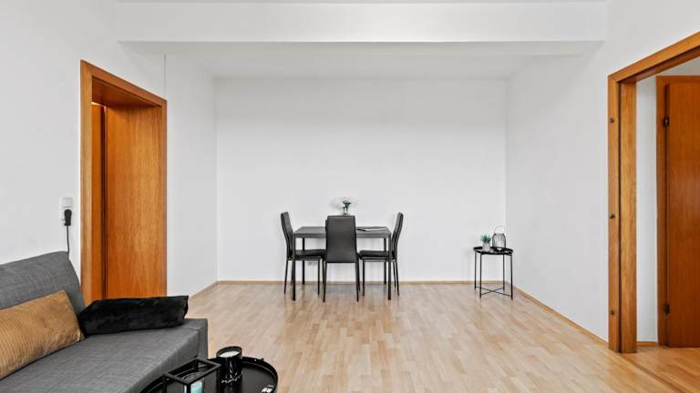Die Ferienwohnung umfasst zwei Schlafzimmer, ein Wohnzimmer und eine voll ausgestattete Küche mit Kühlschrank und Kaffeemaschine. Ein Badezimmer mit Badewanne und Haartrockner ist ebenfalls vorhanden. Handtücher und Bettwäsche werden bereitgestellt.