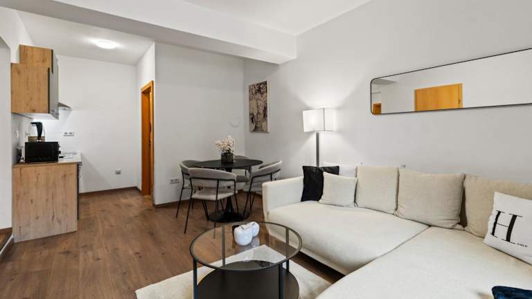 Die Ferienwohnung verfügt über 2 Schlafzimmer, eine voll ausgestattete Küche, die mit einem Kühlschrank und einem Geschirrspüler ausgestattet ist. Zudem bietet die Unterkunft einen Flachbild-TV sowie einen Sitzbereich. Ein Badezimmer mit Badewanne ist ebenfalls vorhanden. Handtücher und Bettwäsche werden gestellt.