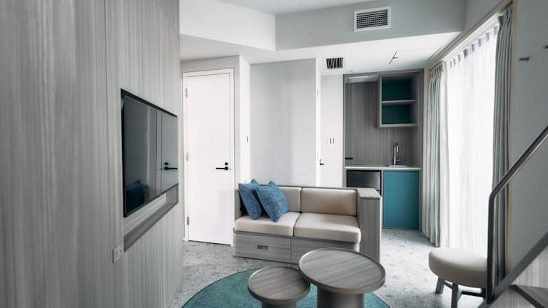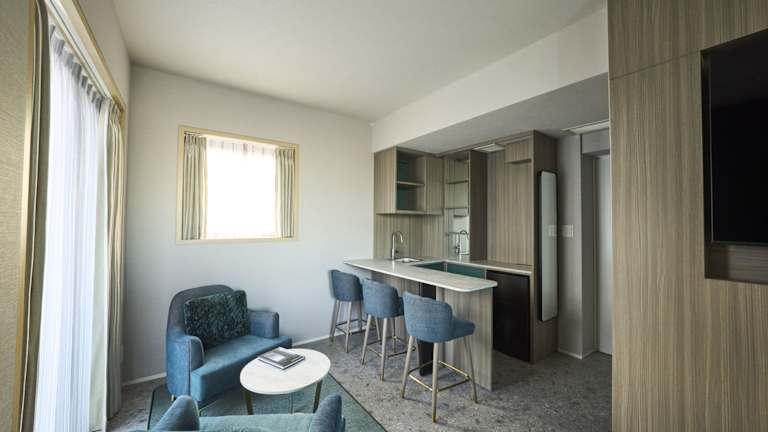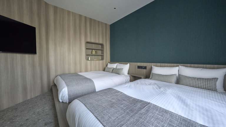 Die klimatisierten Zimmer sind ausgestattet mit einem Schreibtisch, einem Wasserkocher, einem Kühlschrank, einer Mikrowelle, einem Safe und einem Flachbild-TV. Jedes Zimmer verfügt über ein eigenes Badezimmer mit Bidet. Zusätzlich sind Bettwäsche und Handtücher vorhanden.