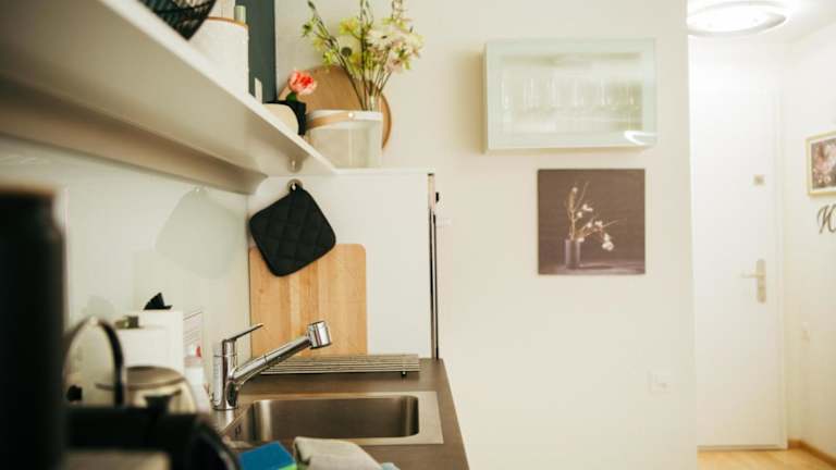 Die Ferienwohnung verfügt über ein Schlafzimmer und eine gut ausgestattete Küche mit Kühlschrank und Geschirrspüler. Ein Flachbild-TV, ein Sitzbereich sowie ein Badezimmer mit Dusche sind ebenfalls vorhanden. Handtücher und Bettwäsche werden bereitgestellt.