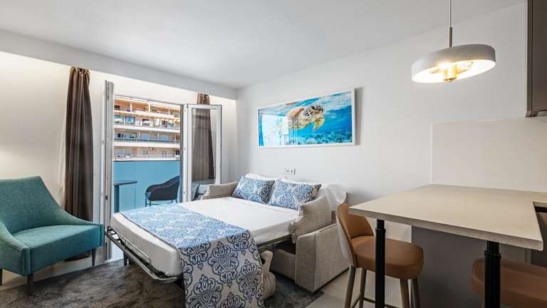 Die Unterkunft befindet sich in Palma de Mallorca, nur 30 Meter von der Playa de Palma entfernt. Der Strand Calo de Sant Antoni ist 1,4 km und der Strand Sa Cova Baixa 1,6 km entfernt. Der Flughafen Palma de Mallorca ist 7 km entfernt und es wird ein kostenpflichtiger Flughafentransfer angeboten.