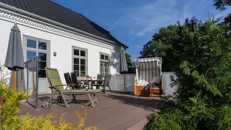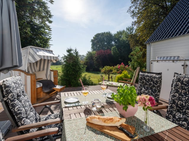 Unsere neu erbauten Ferienhäuser: Strandkorb, Terrasse, Kamin, Sauna, ein ganzes Ferienhaus (2-8 Personen)..... Entspannung vom Alltag, Urlaub, die schönsten Tage des Jahres. Ob zu Zweit, oder mit der ganzen Familie, bei uns sind Sie richtig. Nur drei km entfernt von der Stadt und Südstrand. Eine Spielwiese für die Kinder, eine Terrasse an jedem Haus mit einem Grill und einem großen gemütlichen Esstisch. Ein Strandkorb für entspannte Stunden in der Sonne. Und auf der großen Wiese nebenan tummeln sich Schafe, Ziegen und Ponies. Auf dem Bauernhof: Ländliche Idylle auf dem Bauernhof, abseits der Hauptstraße, in der Natur und doch zentral gelegen, in wenigen Autominuten am Strand oder in der Stadt. In unserem Wohnhaus haben wir eine großzügige, freundlich eingerichtete Wohnung für 2 (4) Personen erstellt. Bei der Einrichtung unserer neu erstellten Ferienwohnung haben wir uns sehr viel Mühe gegeben, damit Sie sich vom ersten Moment an wohl fühlen. Jeder liebevoll gestaltete Raum hat seinen eigenen Charme. Von der Terrasse hat man einen wunderschönen Ausblick auf Hof und Garten und kann Fasane, Hasen und Rehe beobachten. Nicht nur in der Hauptsaison, sondern vor allem in der Nebensaison bietet die isolierte Hoflage Ruhe, Erholung und Zeit für ausgedehnte Spaziergänge an den Naturstränden oder am Südstrand.