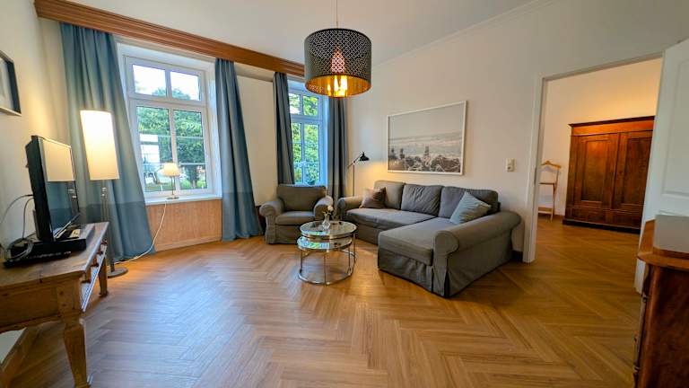 - vier in 2019 neu erbaute Ferienhäuser mit zwei Schlafzimmern auf dem historischen Hof mit je 82qm Wohnraum, Sauna, Kamin, Terrasse, Strandkorb - drei identische Ferienhäuser für 2-8 Personen, 105 qm, 4 Schlafzimmer, 2 Bäder, Wohnbereich, - teilweise überdachte Südterrasse, Kamin und Infrarot-Wärmekabine. - Babyausstattung, Treppenschutzgitter, Waschmaschine, Geschirrspülmaschine. - Hunde erlaubt. - eine Ferienwohnung mit 75 qm auf dem Hof im Bauernhaus mit eigenem Eingang, Küche, Bad, Schlafzimmer und Wohnzimmer, eine Diele, die alle Zimmer verbindet. -zwei Wohnungen im Herrenhaus, Herrenzimmer und Kaminzimmer, je 72qm groß, mit Blick in Garten und auf die Pferdewiese