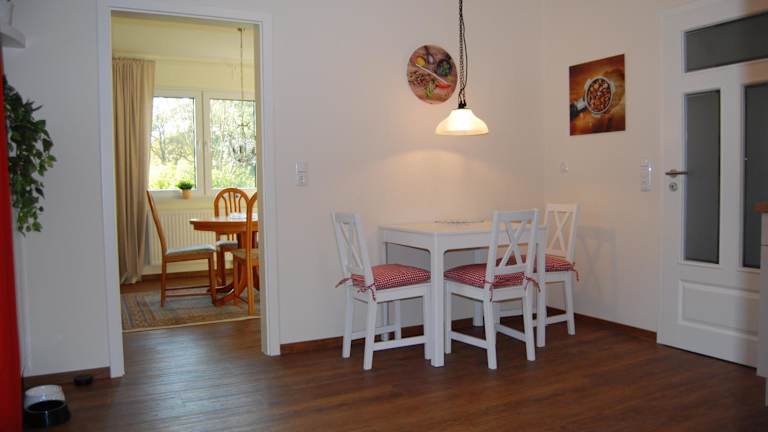 Die Ferienwohnung besteht aus einem Schlafzimmer und verfügt über eine Terrasse mit Gartenblick. Zur Ausstattung gehören ein Satelliten-Flachbild-TV, eine gut ausgestattete Küche mit Kühlschrank, Geschirrspüler und Mikrowelle sowie ein Badezimmer mit Dusche und Haartrockner. Auch eine Veranda und Gartenmöbel sind vorhanden.