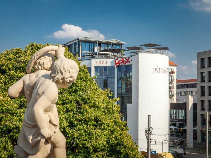 FELIX – RESTAURANT | SUITEN | CONCIERGE | CLUB | EVENT Die Felix Suiten am Zwinger erwarten Sie in der Altstadt von Dresden, direkt gegenüber vom Zwinger und nur einen kurzen Spaziergang von der Elbe, der Semperoper und der Frauenkirche entfernt. Ausgezeichnet mit 5***** F vom Deutschen Tourismus Verband verfügt das Felix über insgesamt 66 Suiten in verschiedenen Größen von XS bis XXL, die allen Anforderungen von Individual- und Geschäftsreisenden entsprechen. Das Felix Restaurant bietet seinen Gästen eine kreative Küche mit einer ausgewählten Speise- und Getränkevielfalt an. Zusätzlich lässt sich auf der Dachterrasse ein einzigartiger Blick auf den Dresdner Zwinger genießen. Der Felix Club befindet sich mit einer Fläche von 279 qm in der 5. Etage und ist für nahezu jeden Anlass von 2 bis 150 Personen die perfekte Event- und Tagungsfläche.