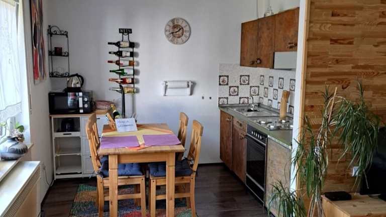 Die Ferienwohnung ist ausgestattet mit 1 Schlafzimmer, einer Küchenzeile, einem Kühlschrank, einem Ofen, einem Flachbild-TV, einem Sitzbereich sowie einem Badezimmer mit Dusche. Handtücher und Bettwäsche sind gegen Aufpreis verfügbar.