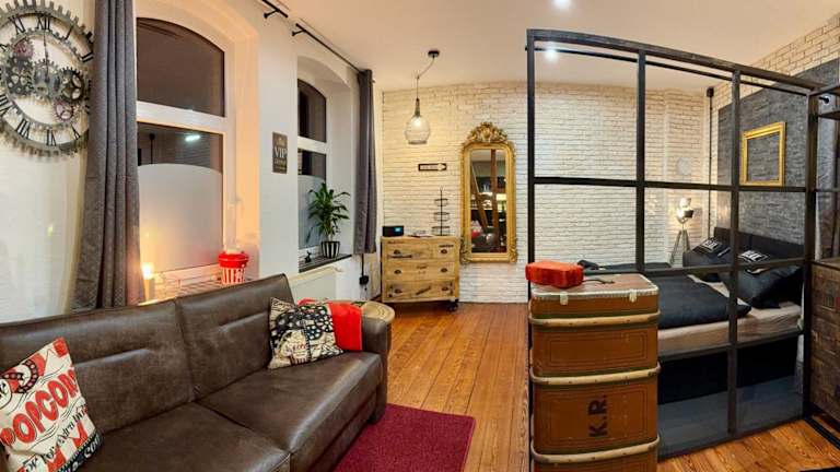 Femo Ziegelei - tiny Loft - separater Eingang - Parkplatz ist eine Ferienwohnung mit separatem Eingang und kostenlosem Privatparkplatz. Die Unterkunft bietet kostenlose WLAN-Nutzung und eine Terrasse. Es handelt sich um eine Nichtraucherunterkunft, die von einem privaten Gastgeber geführt wird. Junggesellen- oder Junggesellinnenabschiede sind nicht erlaubt, und Gäste müssen mindestens 18 Jahre alt sein.