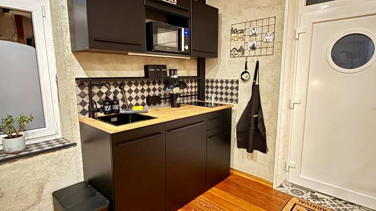 Die Ferienwohnung umfasst 1 Schlafzimmer, ein Wohnzimmer und eine voll ausgestattete Küche mit Kühlschrank und Kaffeemaschine. Darüber hinaus gibt es ein Badezimmer mit Dusche und kostenlosen Pflegeprodukten. Bei Bedarf werden Handtücher und Bettwäsche bereitgestellt. Es handelt sich um eine Nichtraucherunterkunft.