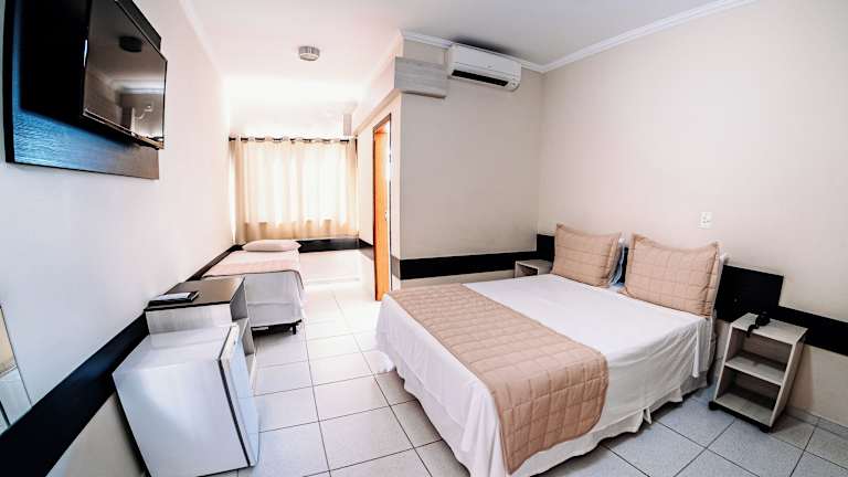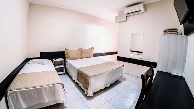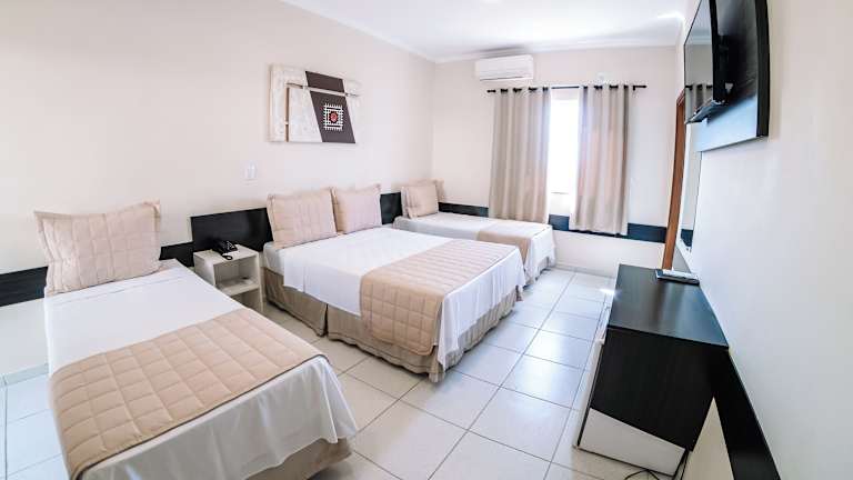 Das Ferian Plaza Hotel in Itapira ist eine komfortable Unterkunft, die mit klimatisierten Zimmern, kostenlosem WLAN und einem kostenfreien Frühstück überzeugt. Das Hotel bietet außerdem Konferenzräume und Parkplätze für seine Gäste. Die einfach eingerichteten Zimmer verfügen über eine Minibar, einen Flachbild-TV und ein eigenes Badezimmer mit einer Warmwasserdusche. Bettwäsche und Handtücher werden kostenfrei zur Verfügung gestellt. Das Hotel bietet auch ein Businesscenter und eine 24-Stunden-Rezeption. Ein Wäscheservice ist auf Anfrage und gegen Aufpreis verfügbar. Das Ferian Plaza Hotel befindet sich 2,5 km vom Busbahnhof Itapira und 70 km vom internationalen Flughafen Viracopos entfernt.