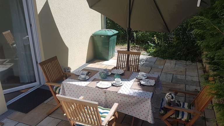 Die Ferienwohnung verfügt über zwei Schlafzimmer, eine Küche mit Kühlschrank und Geschirrspüler sowie ein Badezimmer mit Dusche, Haartrockner und Waschmaschine. Handtücher und Bettwäsche werden bereitgestellt.