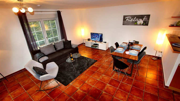 Die Unterkunft verfügt über zwei Schlafzimmer und ein Wohnzimmer, das mit einem Satelliten-Flachbild-TV ausgestattet ist. Die gut ausgestattete Küche bietet alle notwendigen Utensilien und Geräte. Es stehen zwei Badezimmer mit Dusche und Badewanne zur Verfügung. Handtücher und Bettwäsche können gegen Aufpreis bereitgestellt werden.