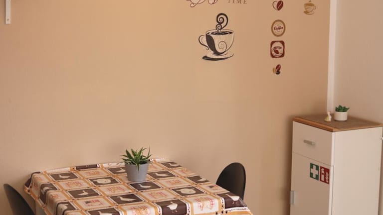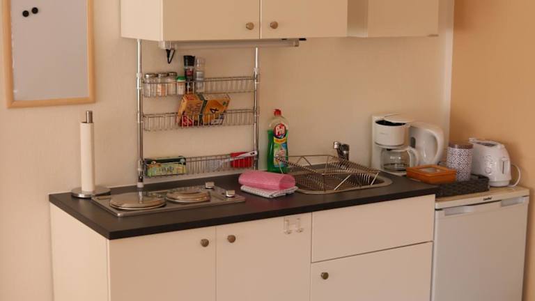 Die Zimmer bieten eine voll ausgestattete Küche mit Kühlschrank, Ofen, Herdplatte, Kaffeemaschine und Wasserkocher. Die Wohneinheiten sind modern eingerichtet und ermöglichen eine unabhängige Verpflegung.