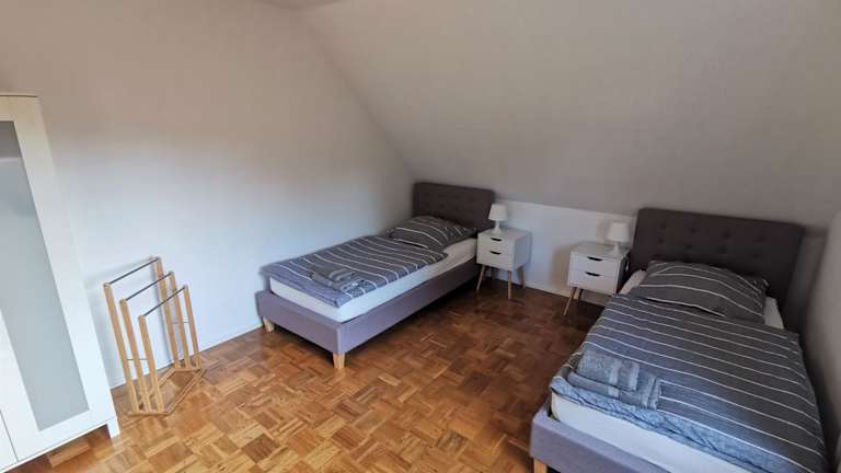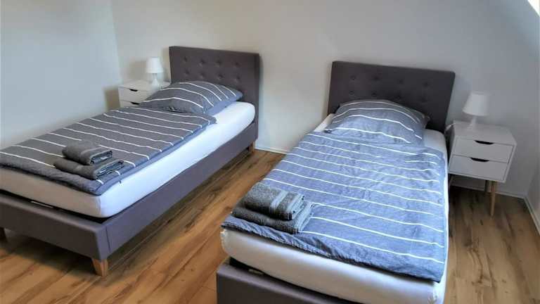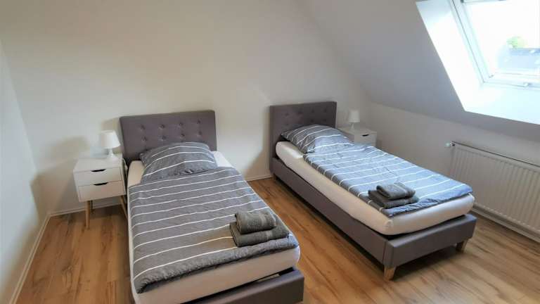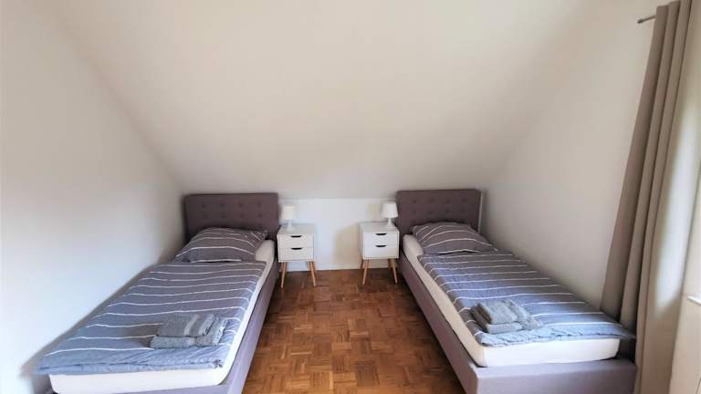 Die Ferienwohnung verfügt über 3 Schlafzimmer und ein Wohnzimmer. Eine voll ausgestattete Küche mit Kühlschrank und Kaffeemaschine sowie ein Badezimmer mit Dusche und Whirlpool sind ebenfalls vorhanden. Handtücher und Bettwäsche werden bereitgestellt.