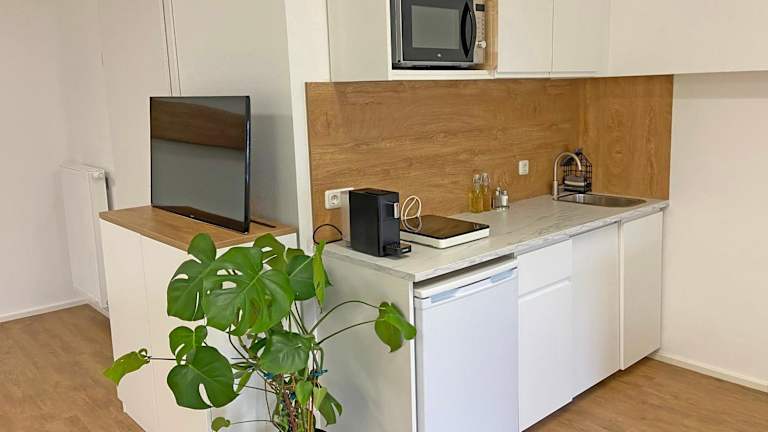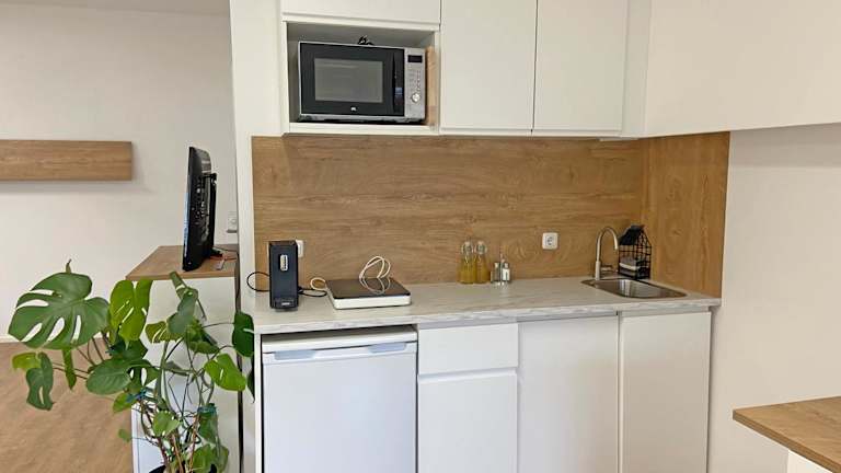 Die Unterkunft verfügt über eine voll ausgestattete Küchenzeile mit Kühlschrank und Kaffeemaschine, einen Flachbild-TV sowie ein eigenes Badezimmer mit Dusche. Alle Wohneinheiten sind mit Sitzplätzen und einem Essbereich ausgestattet.