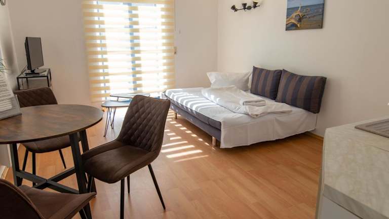 Die Ferienanlage Zum Knirk in Lubmin ist der perfekte Ort für einen entspannten Urlaub in Strandnähe. Die Unterkünfte bieten kostenfreies WLAN und eine voll ausgestattete Küchenzeile, während der Garten mit Terrasse und Meerblick zum Verweilen einlädt. Für Kinder gibt es einen Spielplatz und die Umgebung bietet viele Sehenswürdigkeiten wie die Marienkirche und die Universität Greifswald.