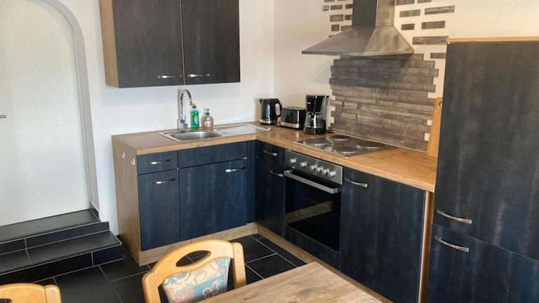 Das Ferienapartment ist ausgestattet mit einem Flachbild-TV sowie einer Küche, die über einen Kühlschrank, einen Ofen, einen Toaster, eine Kaffeemaschine und einen Wasserkocher verfügt.