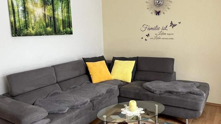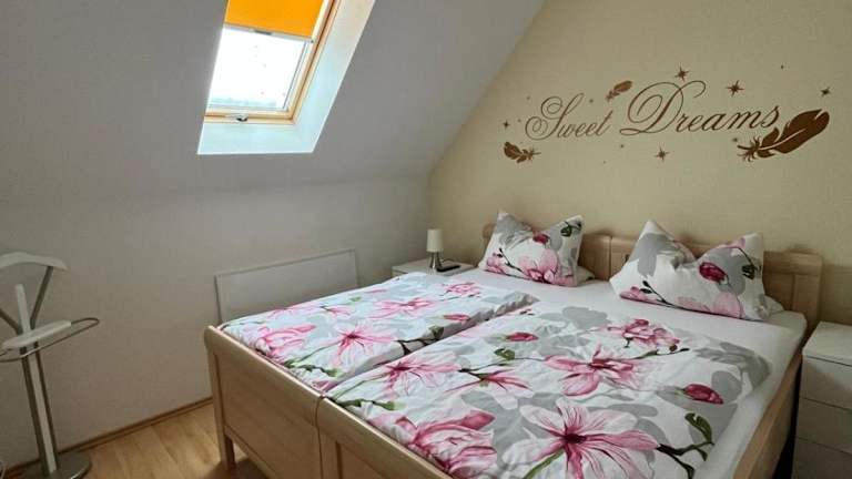 Die Ferienwohnung umfasst 2 Schlafzimmer, ein Wohnzimmer, eine voll ausgestattete Küche mit Kühlschrank und Kaffeemaschine sowie ein Badezimmer mit Dusche. Handtücher und Bettwäsche werden bereitgestellt.