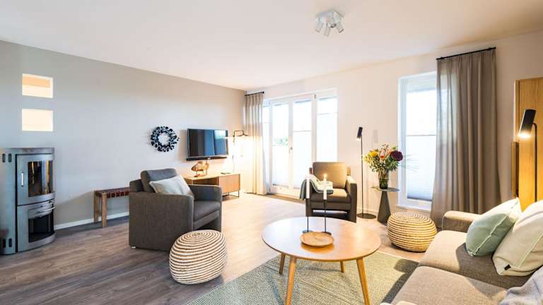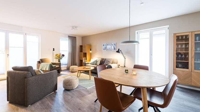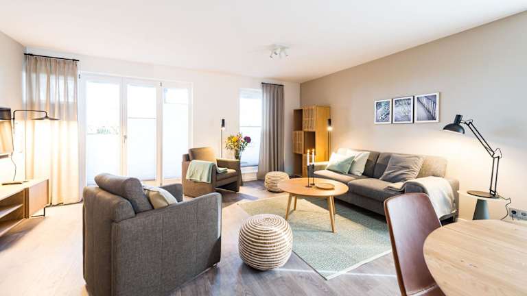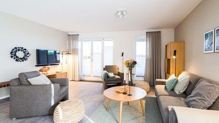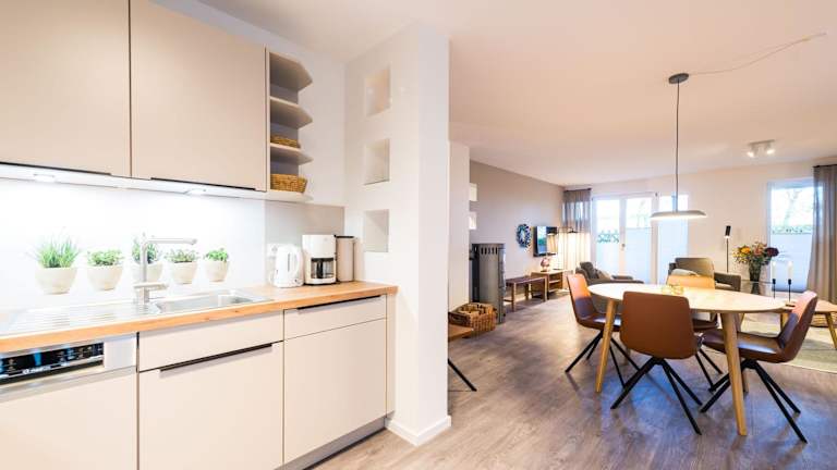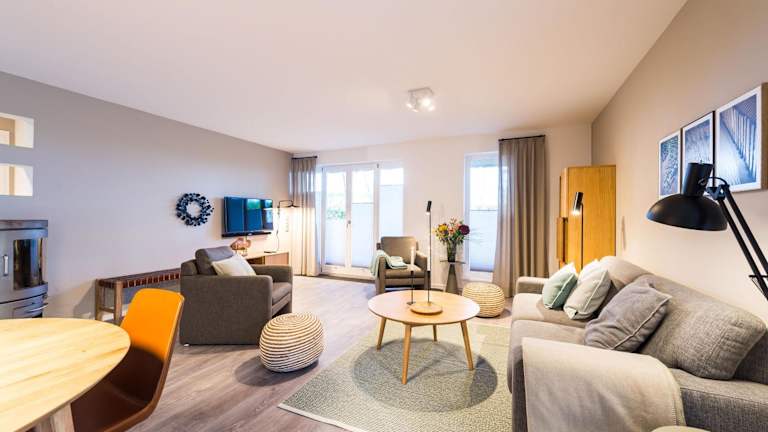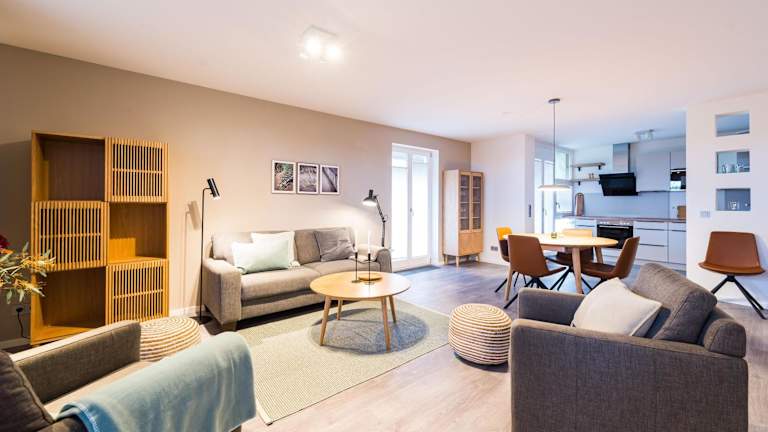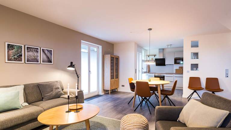 Die Ferienwohnung umfasst zwei Schlafzimmer, ein Badezimmer mit Dusche, einen TV sowie eine gut ausgestattete Küche, die mit einem Kühlschrank und einem Geschirrspüler ausgestattet ist. Bettwäsche und Handtücher sind nicht im Preis enthalten und können gegen eine Gebühr ausgeliehen werden. Internetzugang über WLAN ist in der gesamten Unterkunft verfügbar.