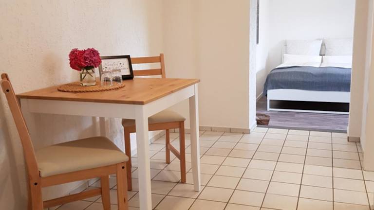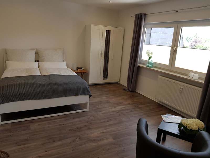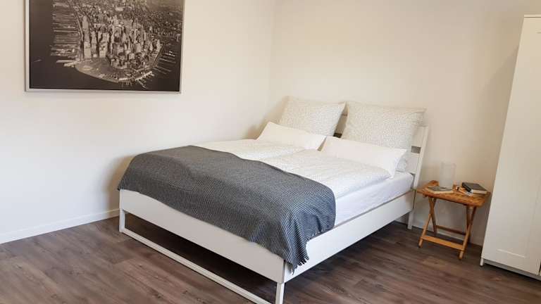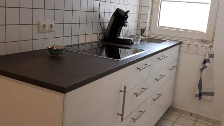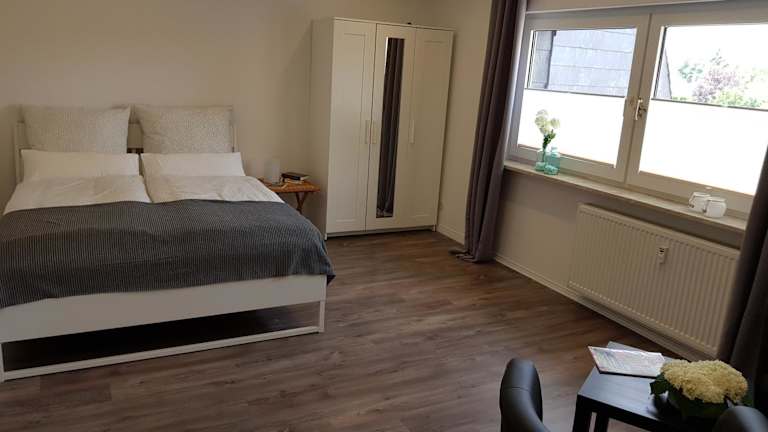 Das Apartment verfügt über ein gemütliches Schlafzimmer mit einem komfortablen Bett. Ein Flachbild-Sat-TV sorgt für Unterhaltung. Die ausgestattete Küchenzeile bietet alles, was Sie für die Zubereitung von Mahlzeiten benötigen, einschließlich Kühlschrank und Backofen. Eine Waschmaschine steht Ihnen ebenfalls zur Verfügung. Das moderne Badezimmer verfügt über eine Dusche. Handtücher und Bettwäsche werden gestellt, um Ihren Aufenthalt angenehm zu gestalten.