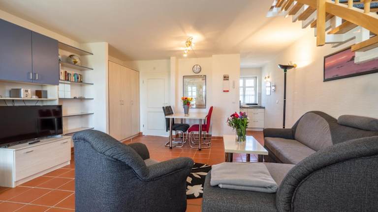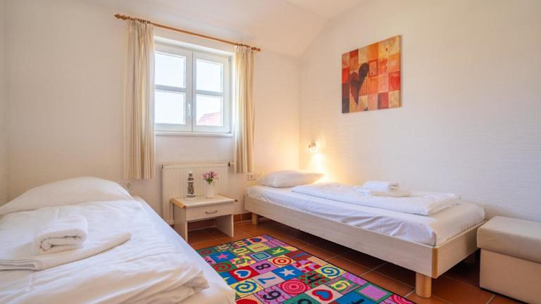 Das Feriendorf Rugana - Klassik Appartement mit 2 Schlafzimmern und Terrasse C50 bietet modernes Wohnen mit zwei Schlafzimmern und einer Terrasse. Kostenfreies WLAN sowie ein Privatparkplatz sind verfügbar. Diese Ferienwohnung ist auf Familien und Urlauber ausgerichtet, die erholsame Tage genießen möchten.