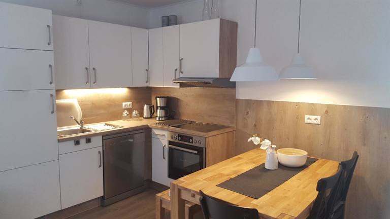 Die Ferienhäuser verfügen über eine voll ausgestattete Küche, die Annehmlichkeiten wie Kühlschrank, Geschirrspüler, Mikrowelle, Herdplatte, Kaffeemaschine und Wasserkocher bietet. Grillmöglichkeiten sind ebenfalls vorhanden.