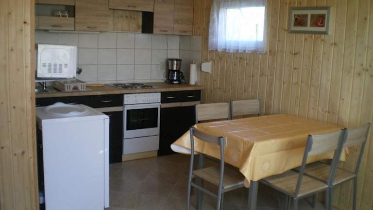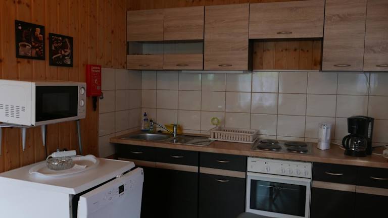 Die Ferienhäuser sind mit einer voll ausgestatteten Küche versehen, die einen Kühlschrank, einen Geschirrspüler, einen Ofen, eine Mikrowelle, eine Herdplatte, eine Kaffeemaschine und einen Wasserkocher umfasst. Es gibt keine zusätzlichen Informationen zu Verpflegungsmöglichkeiten oder gastronomischen Angeboten.