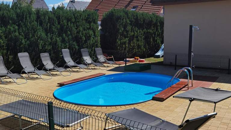 Die Unterkunft Ferienhäuser mit Pool befindet sich in Rewal, einem Ort in der Region Westpommern, in der Nähe des Strandes von Rewal, der nur 1,2 km entfernt ist. Sehenswürdigkeiten wie das Rathaus und der Bahnhof von Kolberg sind in 48 km und 49 km Entfernung erreichbar.