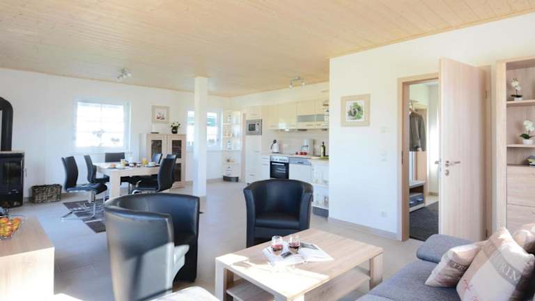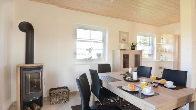 Das Ferienhaus verfügt über drei Schlafzimmer sowie ein Wohnzimmer und ist mit einer voll ausgestatteten Küche ausgestattet, die unter anderem einen Kühlschrank und eine Kaffeemaschine umfasst. Es gibt ein Badezimmer, das mit einer Dusche und einer Badewanne ausgestattet ist. Zur Unterhaltung stehen ein TV und ein DVD-Player zur Verfügung.