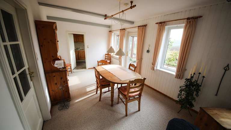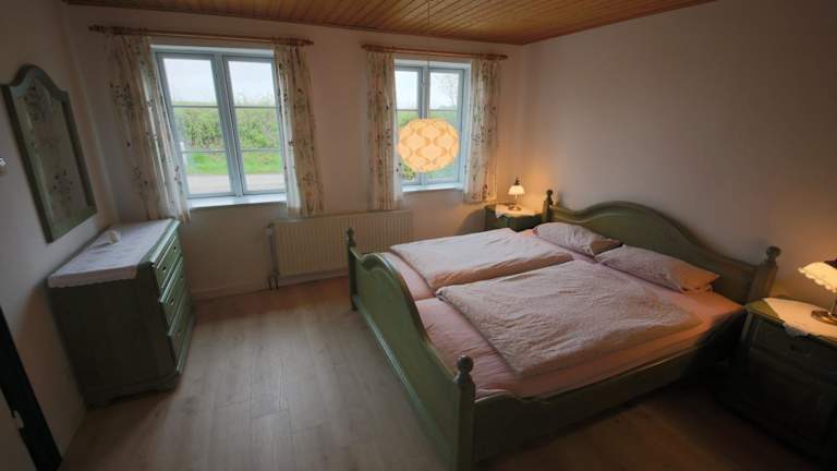 Das Ferienhaus ist mit zwei Schlafzimmern, einem Wohnzimmer und einer voll ausgestatteten Küche einschließlich Kühlschrank und Essbereich ausgestattet. Ein Badezimmer sowie ein TV mit Kabelkanälen und ein Blu-ray-Player sind ebenfalls vorhanden.