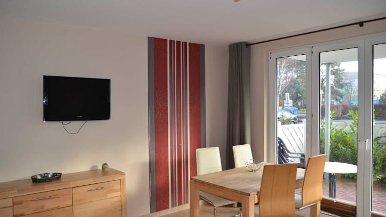 Das Ferienhaus am Maiglöchchenberg 5 befindet sich im Ostseebad Karlshagen, nur 600 m vom Strand entfernt. Die Umgebung bietet zahlreiche Möglichkeiten zum Wandern und Fahrradfahren. In der Nähe liegen beliebte Orte wie Swinemünde (36 km) und Binz (35 km). Der Flughafen Heringsdorf ist 34 km entfernt.