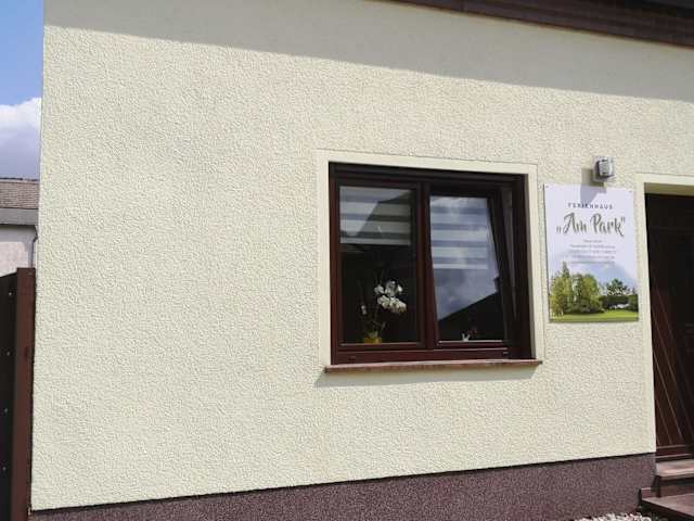 Das Ferienhaus Am Park bietet Übernachtungsmöglichkeiten mit Zugang zu einer Sauna. Es handelt sich um eine private Unterkunft, die eine heimelige Atmosphäre schafft.