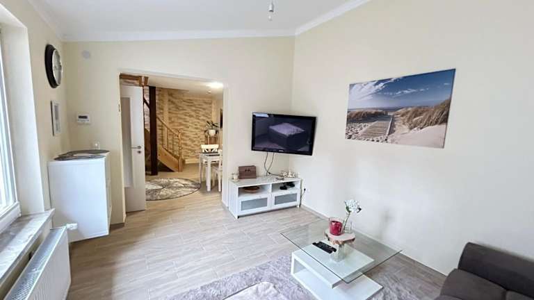 Die Unterkunft verfügt über zwei Schlafzimmer, ein Wohnzimmer, einen Flachbild-TV sowie eine gut ausgestattete Küche mit Kühlschrank und Geschirrspüler. Ein Badezimmer mit Dusche ist ebenfalls vorhanden. Handtücher und Bettwäsche werden bereitgestellt.