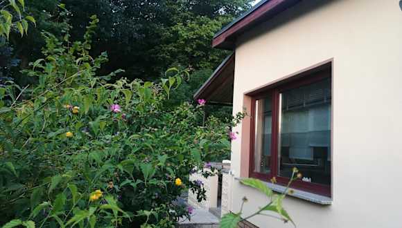 Das Ferienhaus am Wald bietet einen Garten, eine Terrasse mit Blick ins Grüne, Grillmöglichkeiten sowie kostenloses WLAN. Ein kostenfreier Privatparkplatz steht den Gästen ebenfalls zur Verfügung.