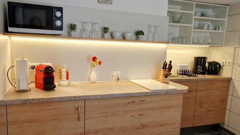 Es steht eine voll ausgestattete Küche zur Verfügung, in der die Gäste ihre Mahlzeiten zubereiten können. Keine Informationen zur Verpflegung wie Restaurants oder Frühstücksangebote liegen vor.