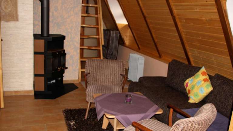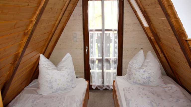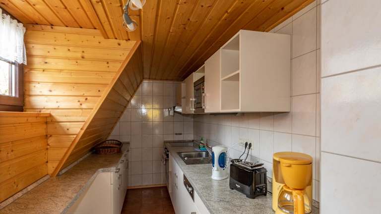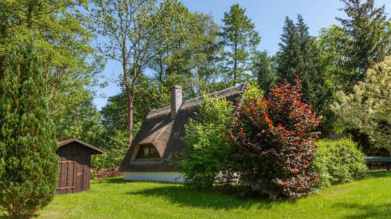 Das Ferienhaus bietet zwei Schlafzimmer, ein Wohnzimmer mit TV, eine gut ausgestattete Küche mit Kühlschrank und Ofen sowie ein Badezimmer mit Dusche. Eine Terrasse mit Gartenblick ist vorhanden. Handtücher und Bettwäsche können gegen Aufpreis bereitgestellt werden.