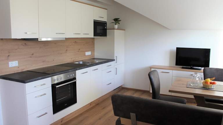 Die Apartments im Ferienhaus Birkenweg sind geräumig und bieten Ihnen eine komfortable Unterkunft. Jedes Apartment verfügt über eine gut ausgestattete Küche, in der Sie Ihre eigenen Mahlzeiten zubereiten können. Der Essbereich lädt zum gemeinsamen Essen ein. Für zusätzlichen Komfort gibt es einen Geschirrspüler, der das Aufräumen erleichtert. Das Badezimmer ist modern und bietet alles, was Sie benötigen. Entspannen Sie sich im gemütlichen Sitzbereich und genießen Sie Ihre Lieblingssendungen auf dem Kabel-TV. Die Terrasse oder der Balkon bietet einen atemberaubenden Blick auf die umliegenden Berge und ist der perfekte Ort, um die frische Bergluft zu genießen.