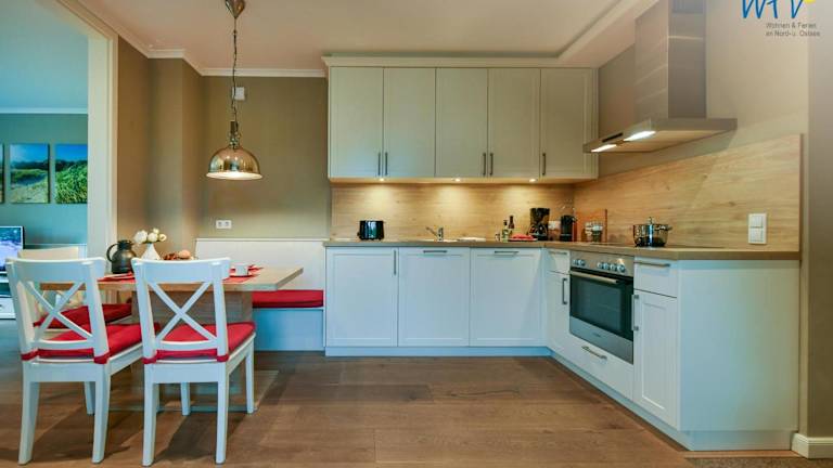 Die Ferienwohnungen verfügen über 2 bis 3 Schlafzimmer, ein Wohnzimmer, eine voll ausgestattete Küche mit Kühlschrank, Geschirrspüler, Waschmaschine, Ofen und Herdplatte sowie ein Badezimmer mit Dusche und Haartrockner. Handtücher und Bettwäsche werden zur Verfügung gestellt.