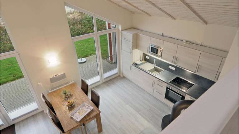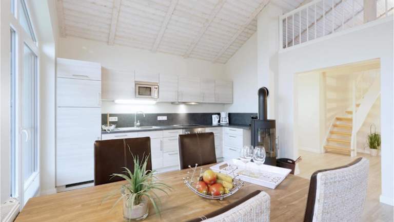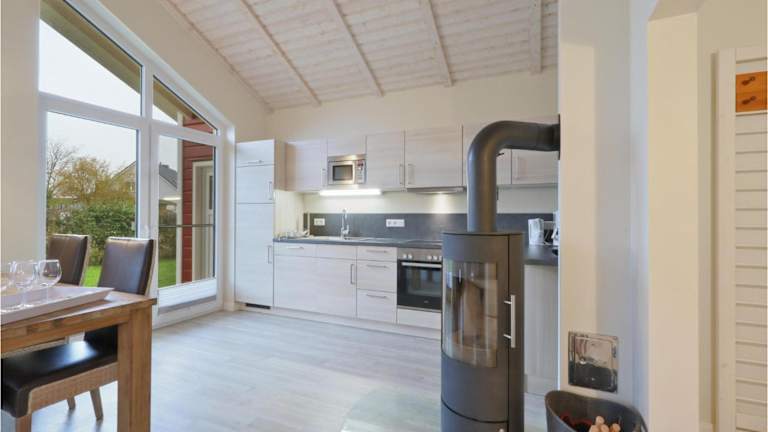 Das Ferienhaus ist mit einer voll ausgestatteten Küche ausgestattet, die Annehmlichkeiten wie einen Kühlschrank und eine Kaffeemaschine umfasst. Es sind keine weiteren Informationen zu Essensmöglichkeiten vorhanden.