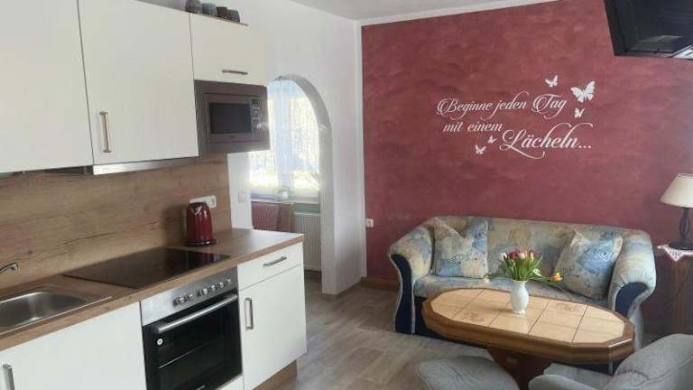 Das Ferienhaus-der-Familie-Demmler verfügt über ein gemütliches Schlafzimmer und ein Wohnzimmer mit einem TV. Die voll ausgestattete Küchenzeile bietet Ihnen die Möglichkeit, Ihre eigenen Mahlzeiten zuzubereiten. Handtücher und Bettwäsche werden gestellt, um Ihren Aufenthalt so angenehm wie möglich zu gestalten.