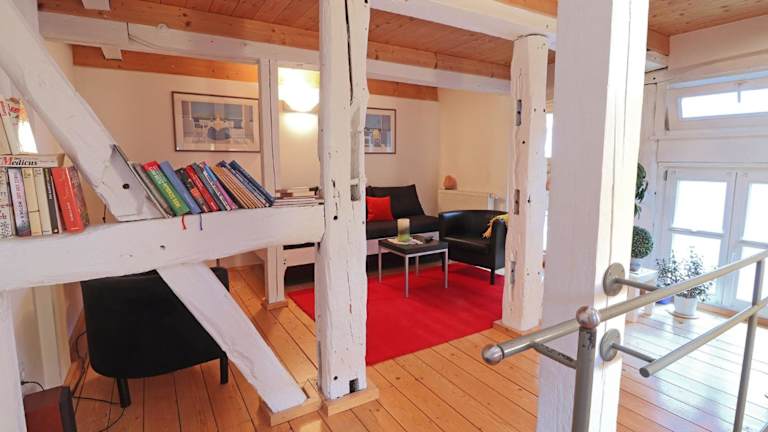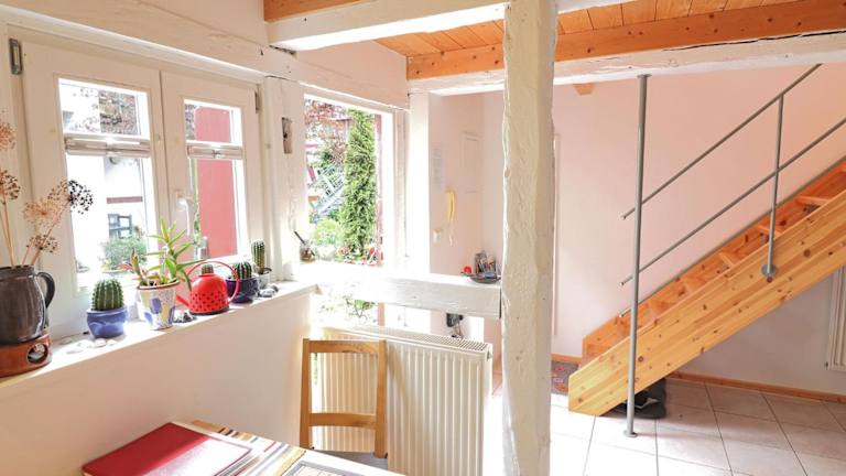 Das Ferienhaus die KATE befindet sich in Barth am Bodden, etwa 30 km von Stralsund entfernt. Die Umgebung bietet Zugang zu Sehenswürdigkeiten wie dem Theater Vorpommern und dem Stralsunder Hafen. Der Flughafen Rostock-Laage ist in einer Entfernung von 85 km erreichbar.