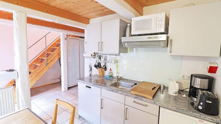 Das Ferienhaus bietet Platz für bis zu 2 Personen und umfasst ein Schlafzimmer, ein Wohnzimmer sowie ein Badezimmer mit Dusche. Die Küche ist gut ausgestattet und verfügt über einen Kühlschrank und einen Geschirrspüler. Zur Ausstattung gehören außerdem ein Flachbild-TV, Handtücher und Bettwäsche.
