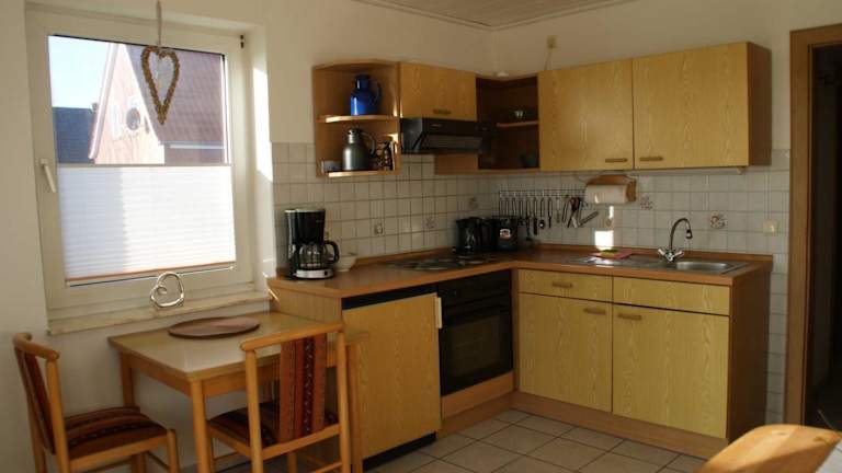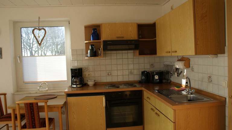 Die Unterkunft verfügt über eine voll ausgestattete Küchenzeile mit einem Kühlschrank und einer Kaffeemaschine, sodass selbstverpflegte Verpflegung möglich ist.