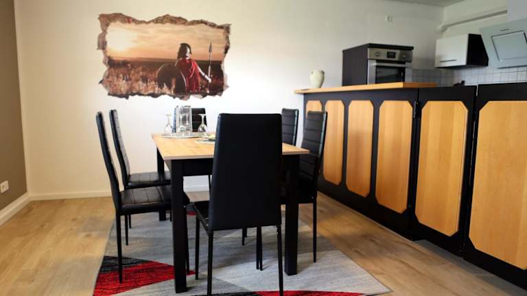 Die Ferienwohnung umfasst 3 Schlafzimmer, ein Wohnzimmer, eine voll ausgestattete Küche mit Kühlschrank und Kaffeemaschine sowie ein Badezimmer mit Dusche und Haartrockner. Handtücher und Bettwäsche werden zur Verfügung gestellt.