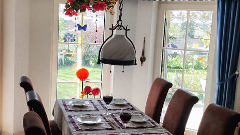 Die große Ferienwohnung bietet eine top Ausstattung und umfasst einen Garten sowie eine Terrasse. Sie ist ideal für einen komfortablen Aufenthalt in Dinkelsbühl und verfügt über praktische Annehmlichkeiten wie einen kostenlosen Privatparkplatz sowie kostenfreie Fahrräder.