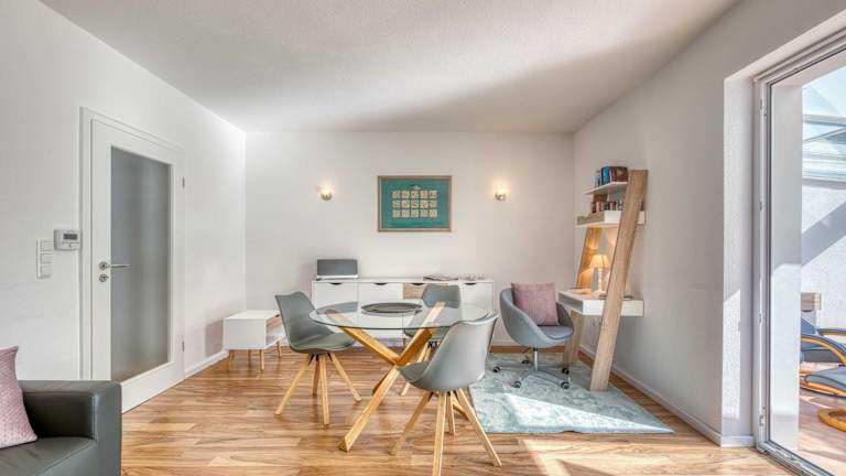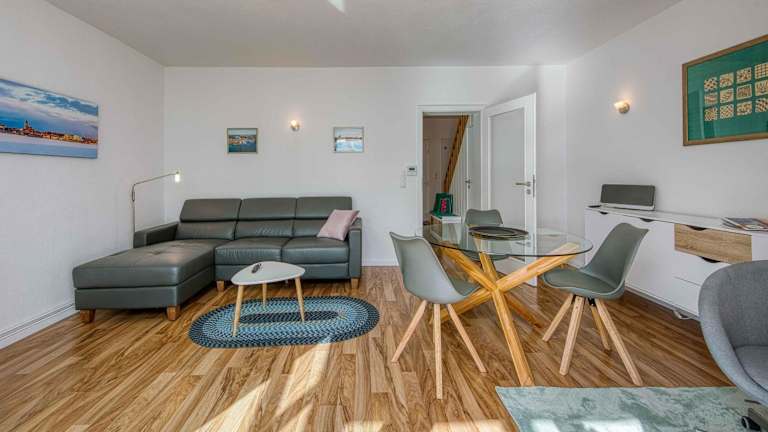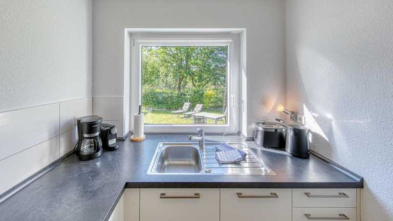 Die Ferienwohnung umfasst ein Schlafzimmer sowie zwei Badezimmer. Zur Ausstattung gehören Bettwäsche, Handtücher, ein TV, eine voll ausgestattete Küche und ein Balkon mit Seeblick. Das Ferienhaus ist für bis zu zwei Personen geeignet und bietet eine angenehme Atmosphäre.
